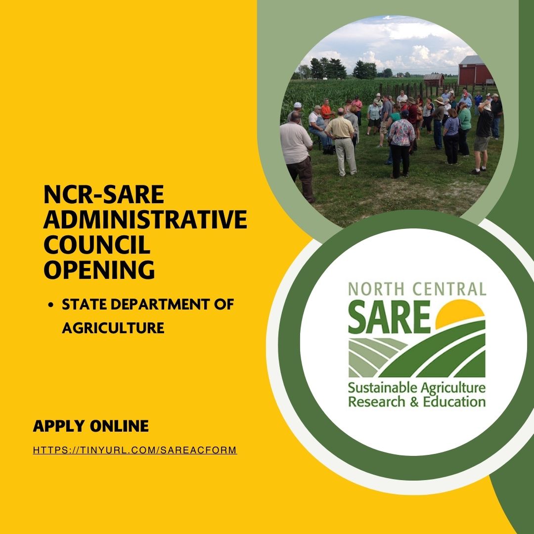NCR-SARE has an opening for a state Department of Agriculture representative to join the Administrative Council.