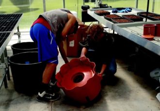 After the initial purchase of the garden towers, students assembled the tower pieces and attached the wheels and casters to the towers. They also raised composting worms and added them to the towers, improving their understanding of vermiculture and composting.