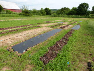 - Soil health: Indicators of soil microbial health tended to be higher with alternative mulches. For example, at one farm white clover increased soil nitrogen cycling compared to plastic mulch. Likewise, indicators of soil carbon sequestration potential tended to be higher with cover crop mulches compared to plastic or straw mulches.