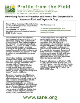 - Maximizing Pollinator Protection and Natural Pest Suppression in Minnesota Fruit and Vegetable Crops (GNC16-229)