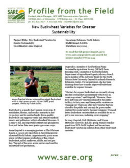 Ongstad is a member of the Northern Plains Sustainable Agriculture Society (NPSAS) Farm Breeding Club, a member of the North Dakota Department of Agriculture Organic Advisory Board, and a member of the Advisory Board for the North Dakota State University Central Grasslands Research Extension Center. For several years, she has been thinking about how to make improved buckwheat available for organic farmers.