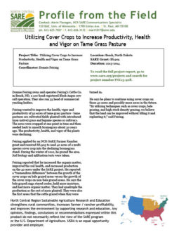 Feiring applied for an NCR-SARE Farmer Rancher grant and received $6,905 to seed 40 acres of a multi species cover crop into the declining bromegrass stand. During the winter of 2012, he grazed the area. Soil biology and infiltration tests were taken.