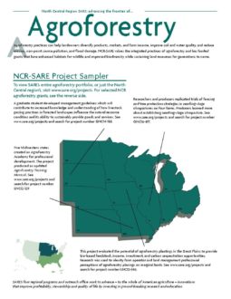 Agroforestry practices can help landowners diversify products and markets, boost farm income, improve soil and water quality, and reduce erosion, non-point source pollution, and flood damage. NCR-SARE values the integrated practices of agroforestry and has funded grants that have enhanced wildlife habitat and improved biodiversity while sustaining land resources for generations to come.