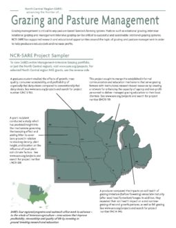 Grazing management is critical to any pasture-based livestock farming system. Practices such as rotational grazing, intensive rotational grazing, and management intensive grazing can be critical to successful and sustainable grazing systems. NCR-SARE has supported research and educational opportunities around the topic of grazing and pasture management in order to help producers reduce costs and increase profits.