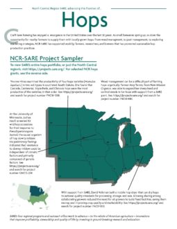 Craft beer brewing has enjoyed a resurgence in the United States over the last 30 years. As small breweries spring up, so does the opportunity for nearby farmers to supply them with locally grown hops. From weed management, to pest management, to exploring marketing strategies, NCR-SARE has supported work by farmers, researchers, and brewers that has promoted sustainable hop production practices.