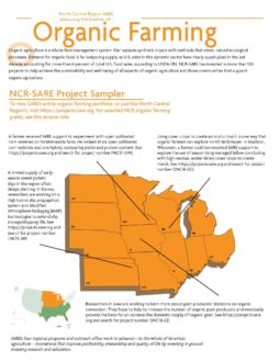 Organic agriculture is a whole-farm management system that replaces synthetic inputs with methods that mimic natural ecological processes. Demand for organic food is far outpacing supply, as U.S. sales in this dynamic sector have nearly quadrupled in the last decade. NCR-SARE has invested in more than 100 projects to help achieve the sustainability and well-being of all aspects of organic agriculture and those communities that support organic producers.