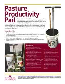The Pasture Productivity Pail (PPP) is a set of tools to help you make informed decisions on pasture management and improvement. Developed with support from a SARE grant, it is modeled after and complements the NRCS Soil Health Bucket. The PPP provides additional information on many above-ground factors that influence pasture productivity.