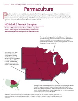 Permaculture practitioners strive to build sustainable and self-sufficient agricultural ecosystems that are modelled after natural ecosystems. Permaculture can include concepts such as agroforestry, silvopasture, no-till, rainwater harvesting, mulching, managed intensive rotational grazing, and keyline design. NCR-SARE has supported work in permaculture as practitioners explore biodiverse agricultural ecosystems that sustain both themselves and their stewards.