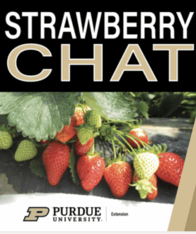 Strawberry Chat is a virtual discussion about strawberry production at small and diversified farms in Indiana and neighboring states. The hosts, Wenjing Guan and Miranda Purcell of Purdue University, invite guests to discuss activities that happen at the time of the year and cover different production systems.